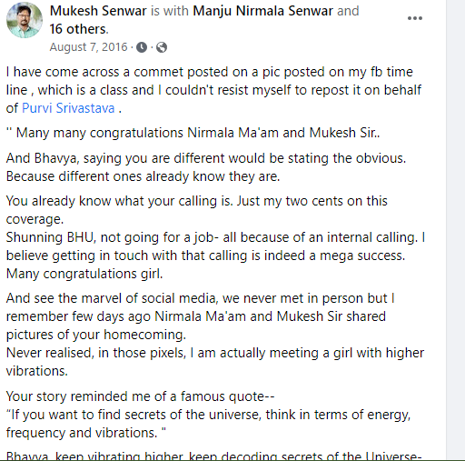 August 7, 2016June 26, 2022 purvisrivastava FB Diary-2016 Aug 7-Words of encouragement by respected seniors Link- https://www.facebook.com/MukeshSenwar/posts/pfbid0CYRmP3z6RVWyEPEDGRR2ygMRcBkwFDMfMwZwVLoobsW8bSjPHrU8PkFwrbhafkqhl Share this: Click to share on X (Opens in new window) X Click to share on Facebook (Opens in new window) Facebook Like Loading... Related
