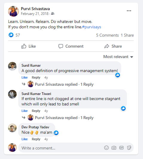 January 21, 2018July 1, 2022 purvisrivastava FB diary- 2018 Feb 21- Move. Do things. Link- https://www.facebook.com/purvi23.srivastava/posts/pfbid02cLqtsFrX6nmtEaf1JCYV8LEuvJKEpJ8aggjJAD2YfiSF2AMzHF6RKNfjjj1YCTRhl Share this: Click to share on X (Opens in new window) X Click to share on Facebook (Opens in new window) Facebook Like Loading... Related