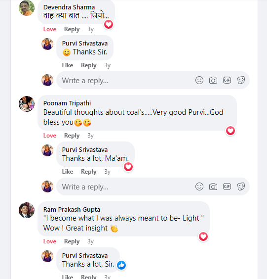 October 5, 2018July 1, 2022 purvisrivastava FB diary- 2018 Oct. 5- I became what I was meant to be– LIGHT Link- https://www.facebook.com/purvi23.srivastava/videos/2039338146133058 Share this: Click to share on X (Opens in new window) X Click to share on Facebook (Opens in new window) Facebook Like Loading... Related