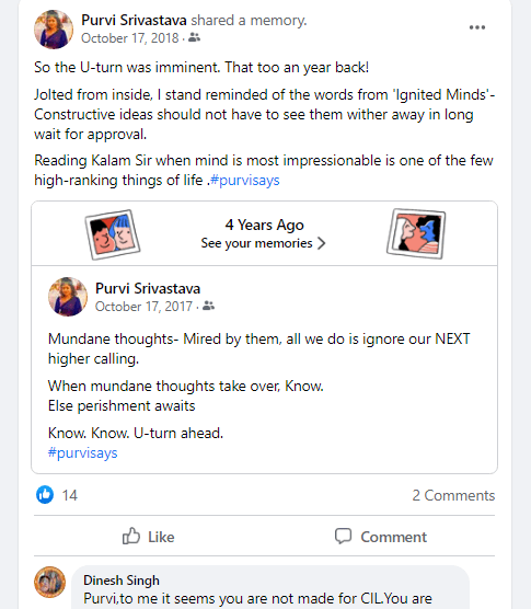 October 17, 2018July 1, 2022 purvisrivastava FB diary- 2018 Oct. 17- U-turn was imminent Link- https://www.facebook.com/purvi23.srivastava/posts/pfbid0BgrF4vTDf9roi1t3EV3a4ZMu7twYbeFfXU66JuvZrLotFSZVgrfgHioL9wDLEHCEl Share this: Click to share on X (Opens in new window) X Click to share on Facebook (Opens in new window) Facebook Like Loading... Related