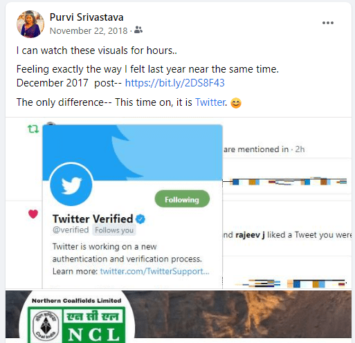 November 22, 2018July 17, 2022 purvisrivastava FB diary- 2018 Nov. 22- Twitter verified FB link- https://www.facebook.com/purvi23.srivastava/posts/pfbid0kkhMmSWMiD2C1NanEWQzUDm4WBbnW8GgJ9CG4Bxeze3JS4uFhJyUe63hVuB9vrPml FB Link- December 2017 post– https://bit.ly/2DS8F43 Share this: Click to share on X (Opens in new window) X Click to share on Facebook (Opens in new window) Facebook Like Loading... Related